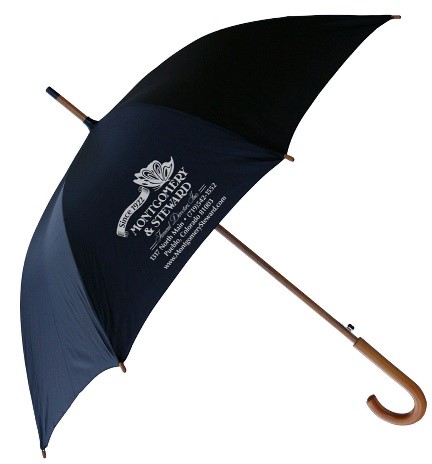 Keep your customers covered on-the-go (literally) with this high-end umbrella and they’ll sing your praises! This umbrella features a wood shaft and tips, curved J-style handle, automatic open, hook and loop closure, and black-enameled U-ribs for enhanced durability. This black luxury umbrella is available with a variety of imprinting options for you to customize it to your unique specifications!